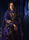 A regal masterpiece in deep purple — this velvet overlap style shirt, exudes timeless allure with its extensive zari and zardozi handwork, meticulously crafted to perfection. The richly detailed embroidery enhances the luxurious texture of the velvet, creating a statement look steeped in tradition yet undeniably modern. Paired with coordinating purple izaar pants and a dip-dyed dupatta finished with a delicate zari border, this ensemble radiates graceful sophistication and festive grandeur.
