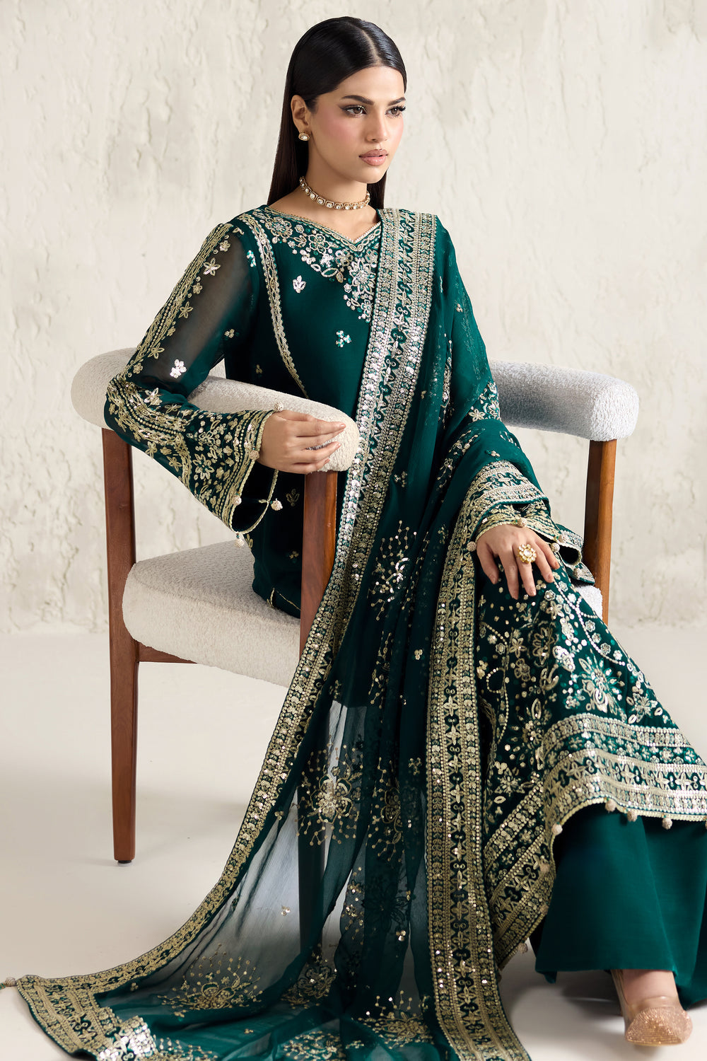 Acknowledging our Pakistani cultural background, we deeply appreciate the value of modesty. Therefore, we may make adjustments to certain design elements to comply with modesty standards. Notable modifications include transforming low backs into traditionally styled regular backs, replacing drop shoulders with normal shoulders, concealing exposed stomach areas, and attaching sleeves to sleeveless dresses.