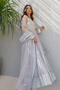 Grey pishwas adorned with resham florals embellished using zardozi, dapka abd 3d flowers