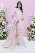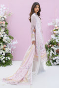 Immerse yourself in the quite elegance of Pastella - a pastel pink digital printed shirt, framed by a graceful chinese collar and an organza-embellished neckline. Embroidered printed florals bloom across three panels, finished with exquisite lace and organza details for a look that is effortlessly timeless.