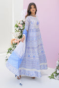 Immerse yourself in the serence elegance of Azure Blue. This graceful ensemble features a white and blue printed kalidaar, adorned with individually embellished panels and a delicately crafted neckline. The design is enhanced by embroidered lace borders and detailed sleeves, adding a touch of sophistication. Paired with straight pants and a contrasting printed dupatta finished with tassels, Azure blue embodies timeless charm and refined craftmanship.