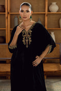 An embodiment of quiet power and refined minimalism, Noir Éclat defines the essence of modern royalty. Crafted in luxurious black velvet, this kaftan is a study in understated grandeur—where simplicity commands attention and every detail speaks of mastery. The design features intricate handwork on the neckline, sleeves, and subtle side slits, creating an alluring balance between structure and fluidity. The sleek silhouette enhances its timeless appeal, making it a perfect statement piece for high-profile soirées, formal evenings, or elegant gatherings. With its effortless grace and couture precision, Noir Éclat isn’t just worn—it’s owned. A true power statement for the woman who embodies elegance with authority.