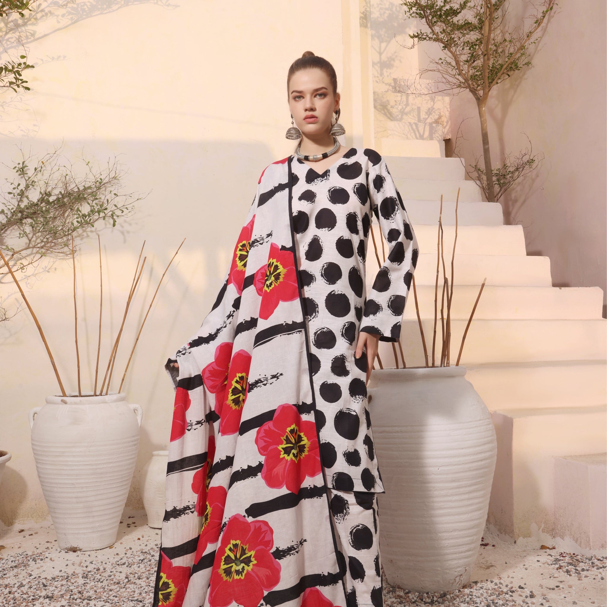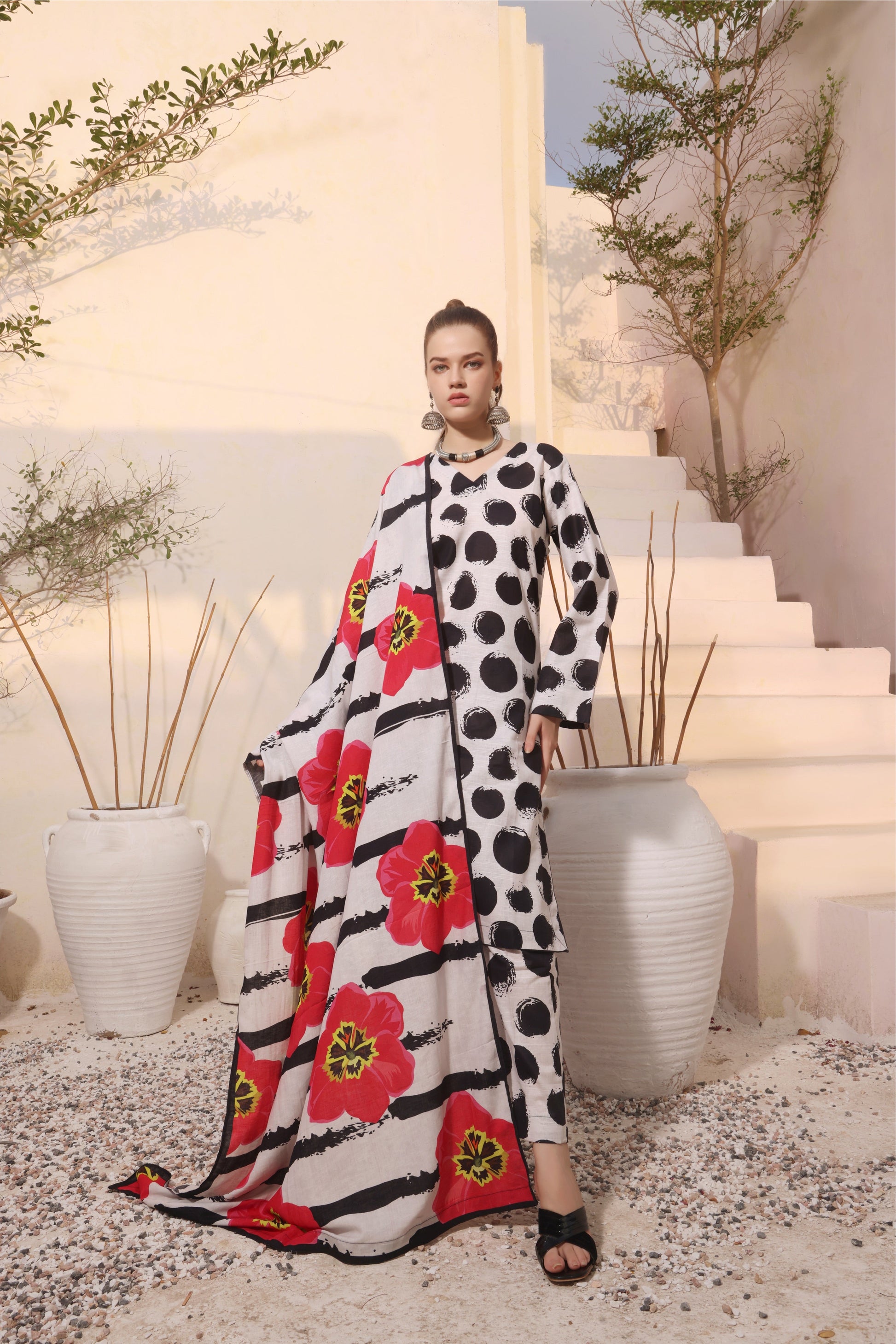 Acknowledging our Pakistani cultural background, we deeply appreciate the value of modesty. Therefore, we may make adjustments to certain design elements to comply with modesty standards. Notable modifications include transforming low backs into traditionally styled regular backs, replacing drop shoulders with normal shoulders, concealing exposed stomach areas, and attaching sleeves to sleeveless dresses.