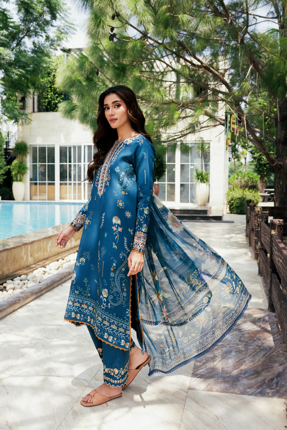 Digital Printed Embroidered Viscose Front 1.25 Mtr Digital Printed Viscose Back and Sleeves 1.85 Mtr Digital Printed Chiffon Dupatta 2.5 Mtr Dyed Viscose Trouser 2.5 Mtr Embroidered Border for Sleeves 1 Yard Embroidered Border for Trouser 1 Mtr .