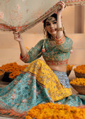 Radiate elegance and festive charm in our Sea Green, Yellow, and Orange Embellished Lehenga, designed to make a statement at any celebration. The lehenga features a vibrant mix of colors — rich Sea Green, bright yellow, and warm orange — each thoughtfully blended to create a striking, joyful effect. Adorned with intricate embellishments including sequins, beads, and delicate embroidery, the lehenga shimmers with every movement, exuding a sophisticated yet playful allure.