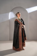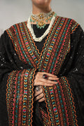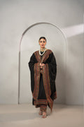 Elevate your formal wardrobe with this luxurious 3-piece ensemble crafted from premium shamooz silk, designed to make a timeless statement. The long black shirt features exquisite hand embellishments with intricate threadwork, delicate sequins, adding a refined sparkle that catches the light with every movement.