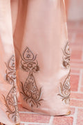 Elegant embroidered motifs on the silk shalwar, adding depth and detail.