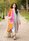 Drape yourself in effortless elegance with this luxurious 4-piece ensemble, crafted from premium Sheesha Silk. This stunning outfit features a harmonious blend of vibrant orange, soft grey, and delicate pink, creating a mesmerizing colour story that’s perfect for festive occasions. The inner shirt offers a sleek, graceful base, while the embellished upper shirt adds opulent detailing, bringing in intricate handwork and shimmering accents that catch the light beautifully. Complete with matching trousers and a flowy dupatta, this ensemble is a true statement of refined glamour and timeless style.