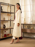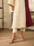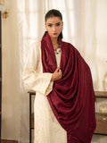 Our classic white-on-white monotone embroidered karandi shirt with a contrasting herringbone winter shawl - the shirt features intricately detailed fully composed embroidered patterns paired with loose fit sleeves.
