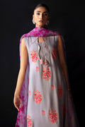 Embrace timeless elegance with our "Moon Flower" ensemble. This stunning silver grey creation features a long sleeveless dress crafted from luxurious cotton net, adorned with intricate floral block print motifs and a machine-embroidered neckline with delicate tassel detailing.