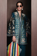Step into the spotlight with this breathtaking ensemble “Tiger Tales”. Handcrafted elegance meets modern flair, featuring a front jacket adorned with intricate tiger patches and delicate embroidered floral. Paired with a sequin spray organza Dupatta and crushed straight pants for a timeless look.
