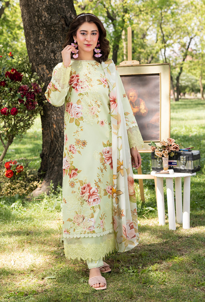 Printed Lawn Chikenkari Embroidered Shirt 3 Meters