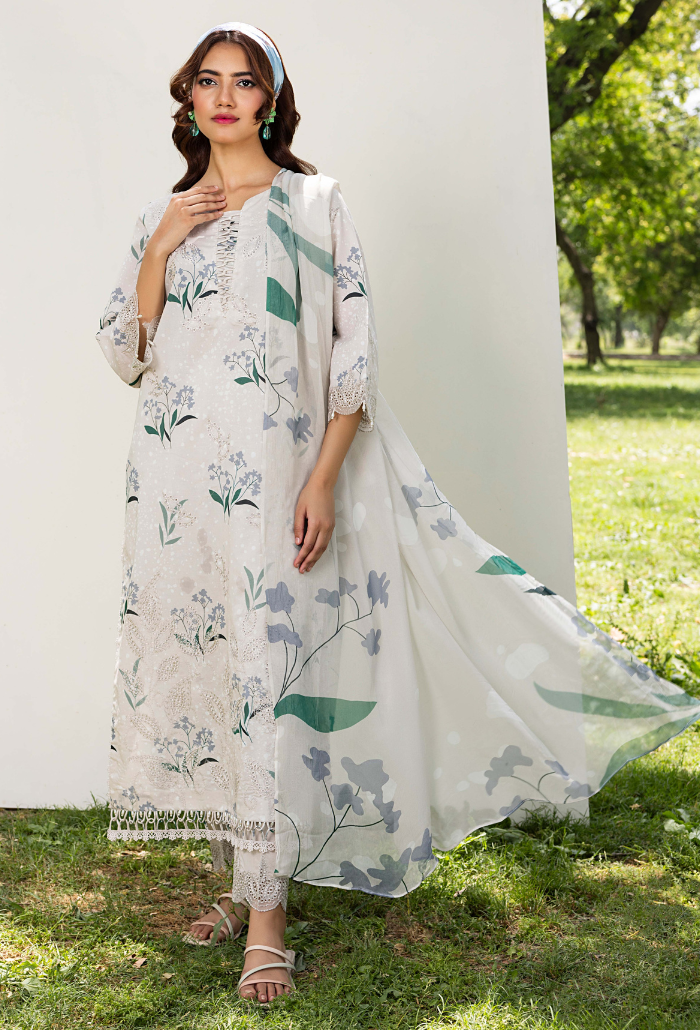 Printed Lawn Chikenkari Embroidered Shirt 3 Meters