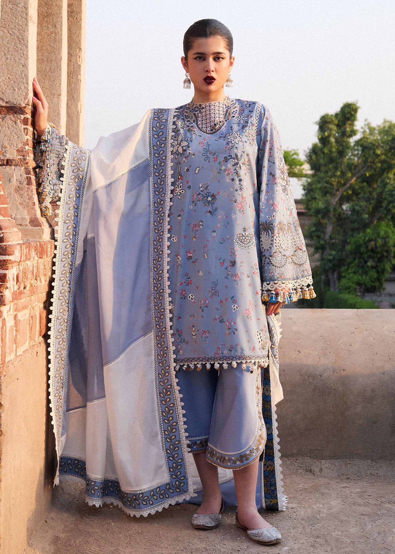 We are delighted to present Hoorain Designer Wear's premium sewing service, which is dedicated to delivering flawless sewing styles and exceptional quality. Our skilled team devotes careful attention to detail, ensuring that each dress is meticulously planned and sewn in accordance with the brand shoots showcased on our website. However, it is important to bear in mind that these shoots often incorporate design elements for illustrative purposes only, which may not necessarily be included in our dresses. Consequently, customers should expect minor variations.