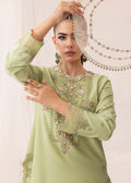 • Premium silk long shirt with embroidered neckline with crystals and pearl hand embellishment, escallaped hem details