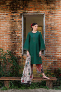 Crafted from premium lawn and tissue silk, this three-piece ensemble showcases meticulous artisanal detailing. The front and sleeves feature intricate embroidery work that commands attention, while the back is rendered in rich dyed lawn for sophisticated depth. The coordinating bottom combines digital printing techniques for contemporary flair, and the accompanying tissue silk scarf—also digitally printed—adds versatile layering options. Ideal for those who appreciate refined craftsmanship and modern design sensibilities in traditional wear.