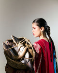 Description: Bold and commanding, this crimson red ensemble makes a statement through intricate craftsmanship and artistic contrast. The shirt features exquisite monochrome dori embroidery running down the neckline and hem, complemented by lace detailing along one sleeve that adds an unexpected touch of delicacy. The silhouette is sleek and tailored, allowing the embroidery to take center stage. Paired with an ivory shalwar adorned with bold screen-printed motifs, the look strikes a perfect harmony between structure and softness. Completing the outfit is a digitally printed silk dupatta in a dramatic palette of florals and abstract patterns, adding fluidity and vibrant energy to the otherwise composed look. The overall ensemble is a celebration of balance—rich tradition interpreted through a modern lens.