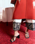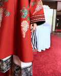 Rooted in tradition and framed by earthy tones, this rust-colored long shirt features multicolor floral embroidery that brings depth to the surface. Baggy sleeves mirror the same intricate threadwork, while light beige culottes with monochrome traditional embroidery offer a soft grounding. A digitally printed chiffon dupatta introduces gentle movement and contrast, rounding out the look with balance and beauty