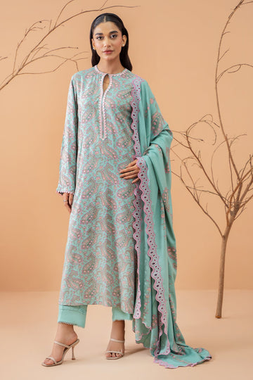 PRINTED AND EMBROIDERED LINEN DUPATTA 2.25 M