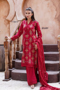 Description: The maroon lawn embroidered three-piece suit exudes timeless elegance, featuring intricate embroidery that enhances its rich color. Complemented by an embroidered chiffon dupatta adorned with delicate tassel details, this ensemble combines luxury with sophistication. The neckline is beautifully accented with lace details, adding a touch of refinement. The sleeves and trousers are meticulously crafted with both stitching and lace details, showcasing exquisite craftsmanship. This suit is the perfect choice for any special occasion, offering a harmonious blend of style and comfort