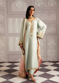 Adeela from Echoes of Elara embodies effortless grace in a soothing pistachio hue. Crafted from luxurious Korean raw silk, the long shirt flows elegantly, offering a perfect blend of tradition and modern sophistication. Paired with matching raw silk trousers and a delicate chunri dupatta, this ensemble is a testament to refined craftsmanship and timeless charm.