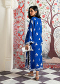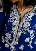 Azure Jewel from Echoes of Elara is a vision of elegance in rich blue hues. Crafted from flowing chiffon, the long shirt exudes grace and sophistication, beautifully adorned with a signature Mahgul hand-worked neckline that adds a touch of timeless artistry. Paired with sleek raw silk trousers, this ensemble is the perfect blend of tradition and modern refinement.