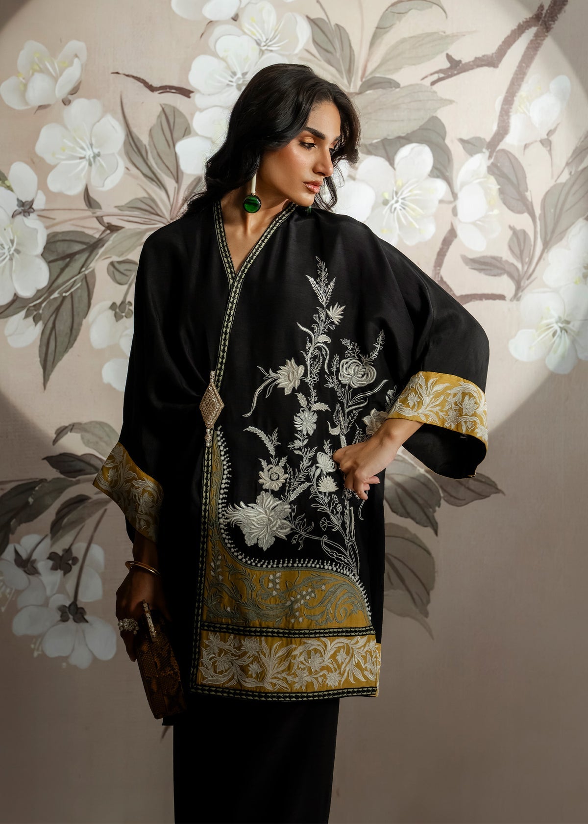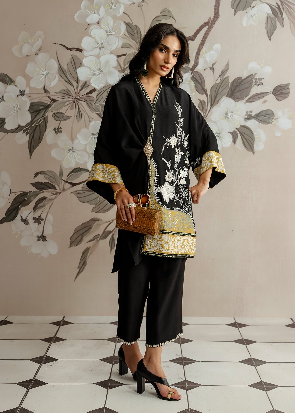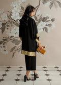 A timeless black ensemble crafted in plush Korean raw silk. The sleek kurti and tailored trousers exude understated charm, perfect for evenings where effortless elegance takes the spotlight.