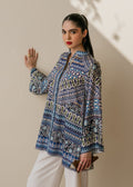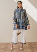 Calm Dew from Samara by Mahgul is a breezy two-piece ensemble featuring a bohemian printed blue and white Korean raw silk kurta paired with white pants. This look captures the essence of understated elegance, making it a must-have addition to your spring wardrobe.