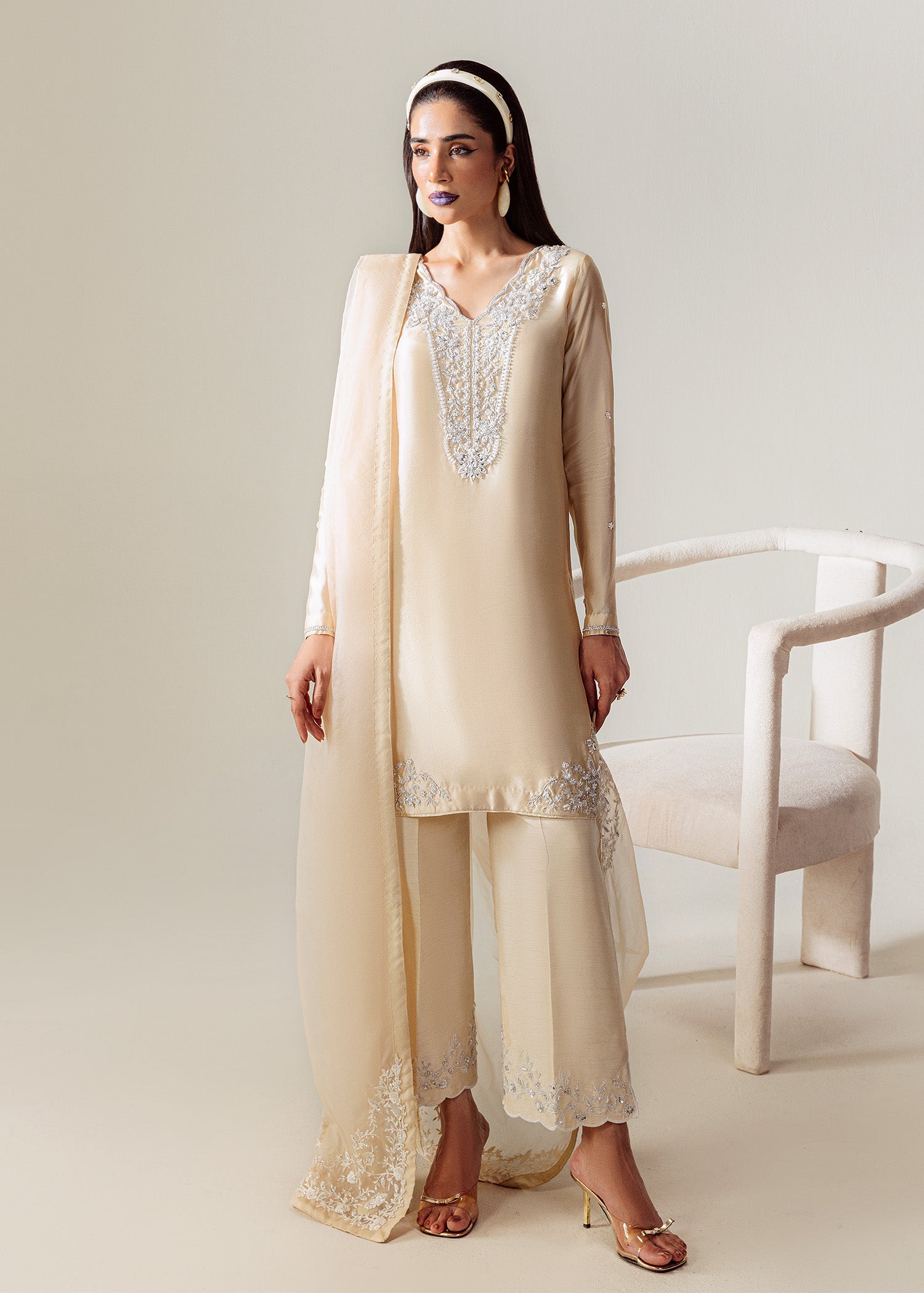 We are delighted to present Hoorain Designer Wear's premium sewing service, which is dedicated to delivering flawless sewing styles and exceptional quality. Our skilled team devotes careful attention to detail, ensuring that each dress is meticulously planned and sewn in accordance with the brand shoots showcased on our website. However, it is important to bear in mind that these shoots often incorporate design elements for illustrative purposes only, which may not necessarily be included in our dresses. Consequently, customers should expect minor variations.