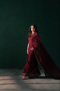 Rich Maroon Chiffon Saree with Embellished Blouse A sleek, plain maroon chiffon saree paired with a heavily embellished blouse for the perfect blend of elegance and glamour..