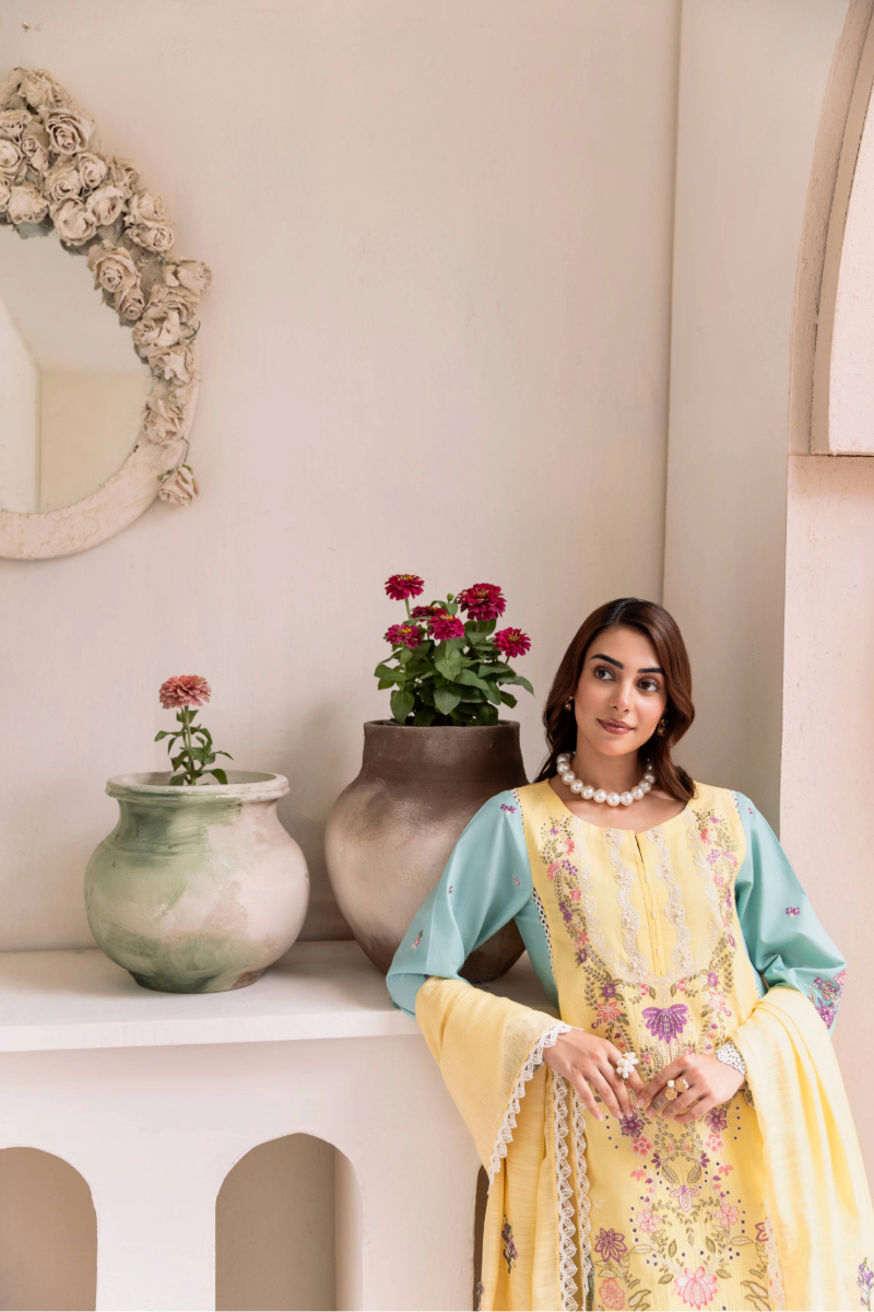 • EMBROIDERED SLEEVES ON LAWN IN AN ACCENT