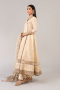 Long panelled angrakha frock with embroidered neckline front and sleeves. Hem detailed with embroidered organza and embroidery border paired with straight trouser and heavily embroidered dupatta