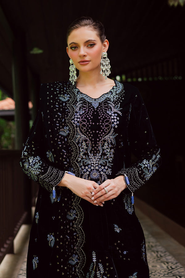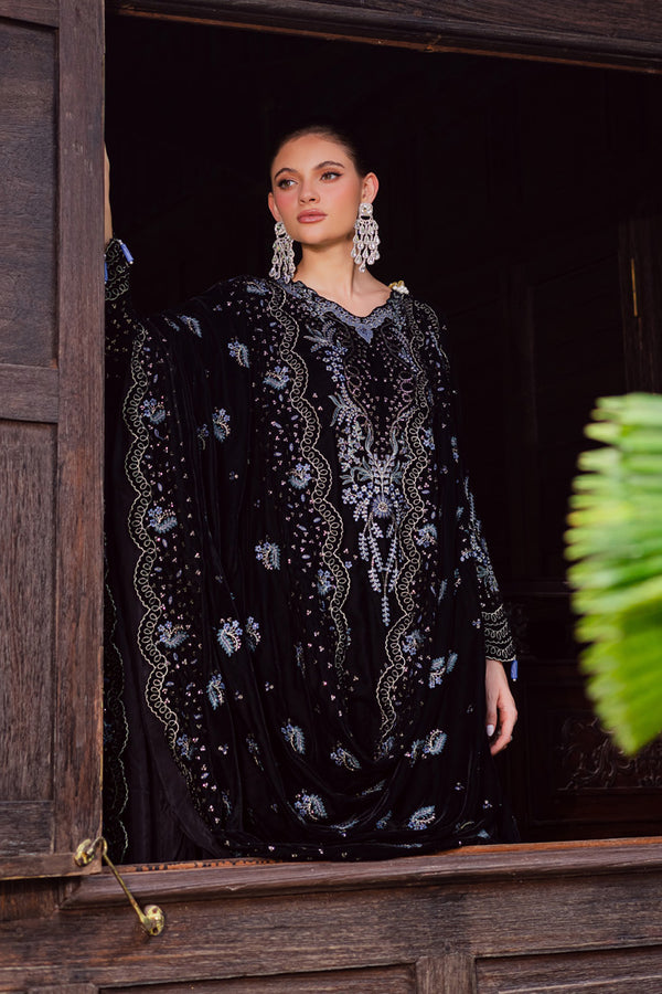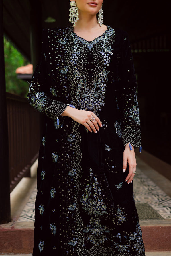 Dyed Velvet Sequins Embroidered Border For Front, Back And Sleeves