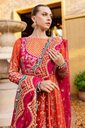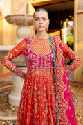 Dyed Contrast Organza Sequins Embroidered Front, Back & Sleeves Border