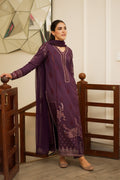 Make a bold statement with this Purple 3-piece pret ensemble, a perfect blend of tradition and contemporary finesse. The V-shaped neckline leads to a beautifully embroidered front enhanced by a delicate organza embroidered daman, exuding refined elegance. Straight sleeves feature organza embroidery borders, adding depth and sophistication to the silhouette. The look is completed with a chiffon dupatta adorned with all-over embroidery, creating a soft, graceful drape. Paired with straight plain trousers, this outfit is ideal for festive gatherings or chic daytime affairs.