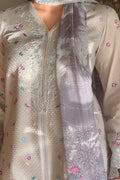 Elevate your wardrobe with timeless elegance in this Grey 3-piece pret ensemble that exudes refined charm. The V-shaped neckline draws attention to the fully embroidered front, beautifully finished with a delicate scalloped border for a sophisticated touch. Straight sleeves adorned with fine embroidery and organza borders add to its graceful silhouette. Paired with a printed silk dupatta that lends a luxurious flair, this outfit brings together style and comfort effortlessly. The look is completed with a straight plain trouser, offering a perfect balance of tradition and contemporary finesse.