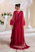 Shirt: Embroidered Front, Sleeves Jaal (Organza) 2.20 Yards Dyed Back (Organza) 1.60 Yards Embroidered Front, Back Daman, Sleeves, Trouser Patti (Organza) 8.25 Yards Embroidered Front, Back Panels, Sleeves Patti (Organza) 11.10 Yards Embroidered Shirt 3D Flowers (Organza) 20 Pcs Fabric: Organza Dupatta: Embroidered Dupatta (Net) With Dupatta Pallu Patti Patch (Organza) 2.75 Yards Fabric: Net Trouser: Trouser (Korean Silk) 4 Yards Fabric: Korean Silk Color: Red Design: Embroidered.