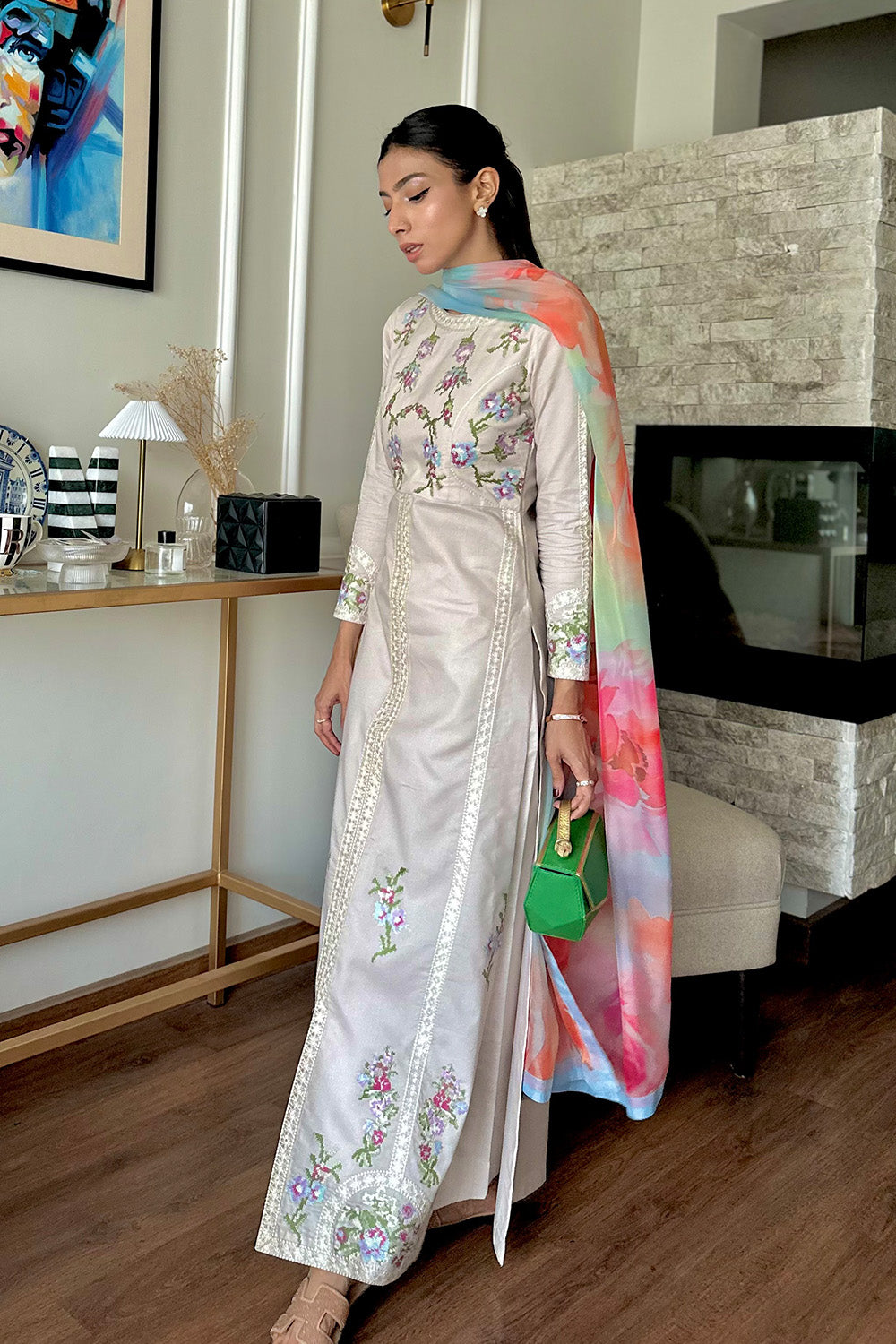 Acknowledging our Pakistani cultural background, we deeply appreciate the value of modesty. Therefore, we may make adjustments to certain design elements to comply with modesty standards. Notable modifications include transforming low backs into traditionally styled regular backs, replacing drop shoulders with normal shoulders, concealing exposed stomach areas, and attaching sleeves to sleeveless dresses.