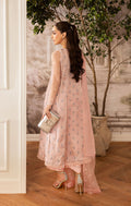 Lunara is soft as a whisper and as striking as a star. Powder pink five-panelled raw silk masterpiece adorned with delicate crystals and stones that catch the light with every move. Paired with a flowing silk dupatta framed in floral embroidery, it's elegance redefined for both daylit soirees and moonlit celebrations..