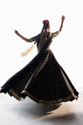 Embroidery of tilla and Sequins along with silver sequin work on choli, sleeves and lehenga. Attached Tassel and Hangings in finishing.