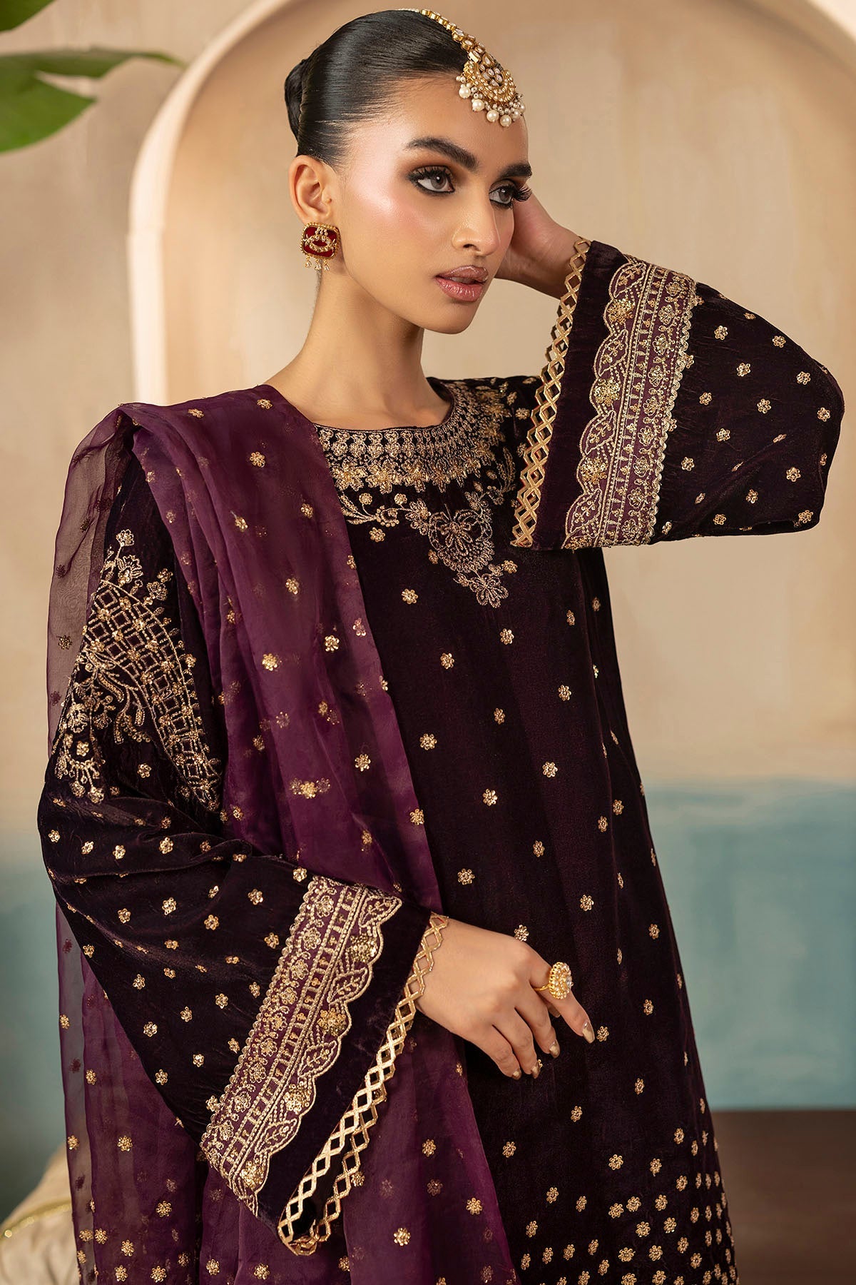 Acknowledging our Pakistani cultural background, we deeply appreciate the value of modesty. Therefore, we may make adjustments to certain design elements to comply with modesty standards. Notable modifications include transforming low backs into traditionally styled regular backs, replacing drop shoulders with normal shoulders, concealing exposed stomach areas, and attaching sleeves to sleeveless dresses.