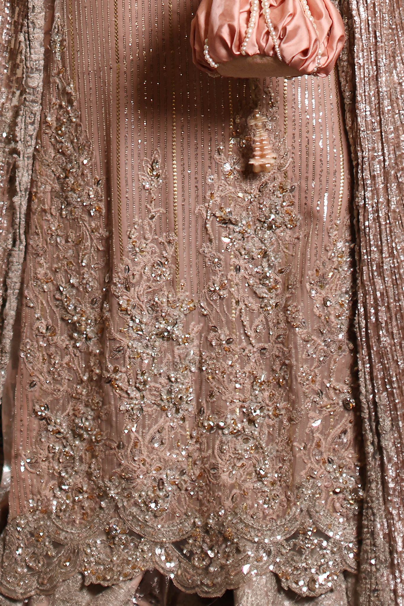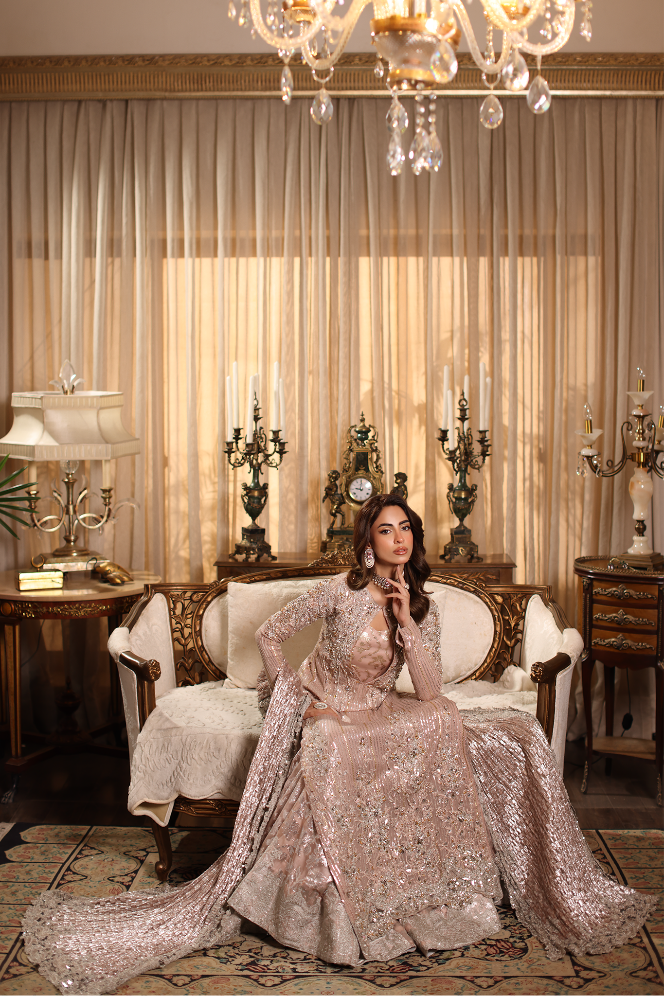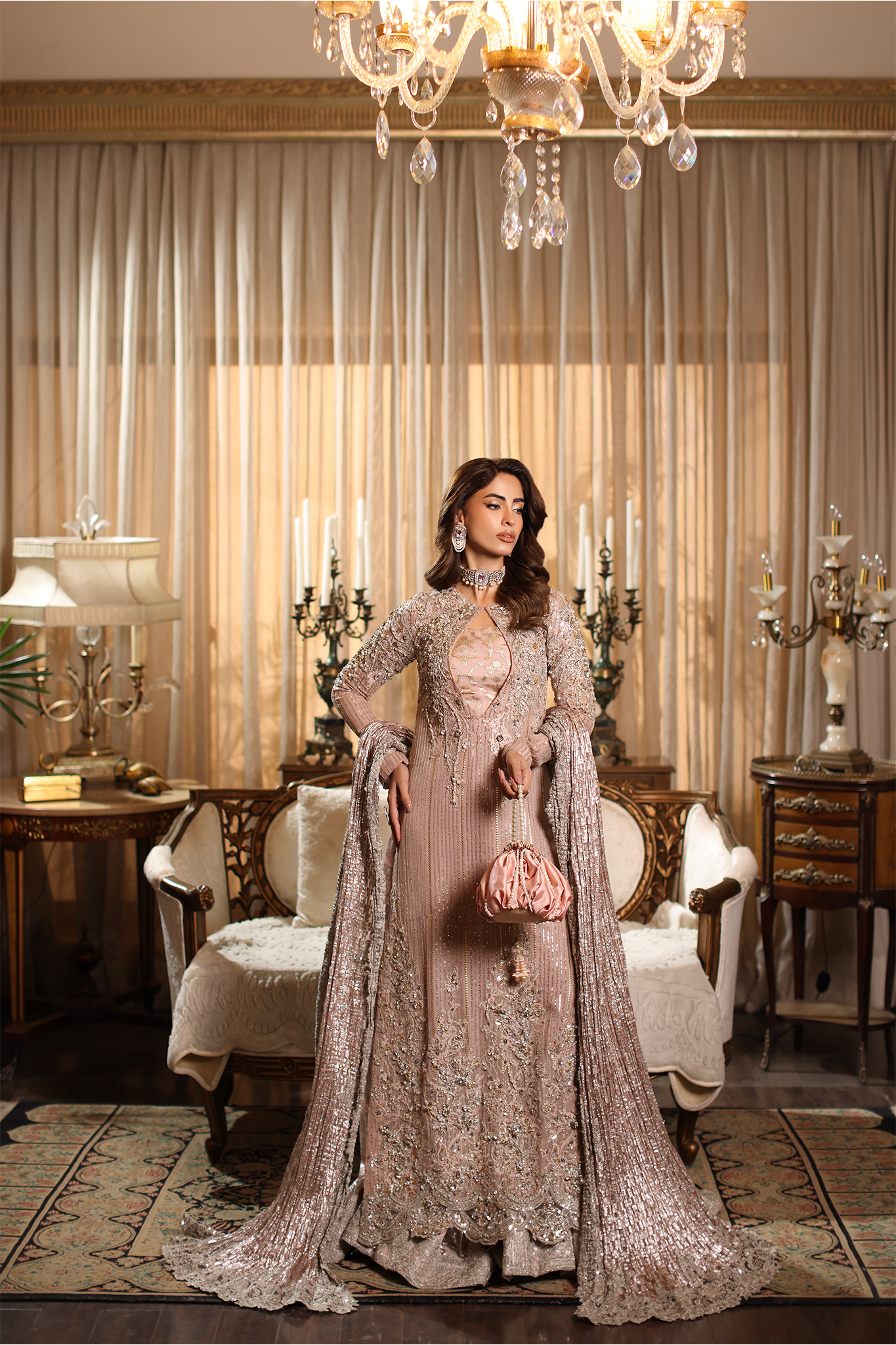 Soft, romantic, and endlessly graceful — Rosé Whispers captures the gentle spirit of femininity in motion. Crafted in delicate pink hues, it features refined embroidery and luminous hand embellishments that evoke the timeless elegance of a rose in bloom. Every detail reflects Musferah Saad’s devotion to hand artistry — whispering of beauty, poise, and couture serenity.