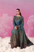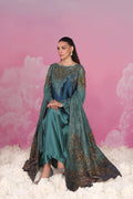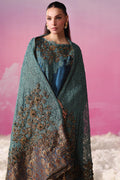 A vision of modern refinement, Emerald Oracle is defined by its chic silhouette with MS Exclusive ombré shading, elevated by gorgeous net lace and signature MS embroidery. Semi-precious hand embellishments add dimension and a luminous touch, capturing couture artistry in every detail. The statement shawl completes this gorgeous look — crafted in delicate net lace lined with tinsel chiffon and edged in kimkhaab. Its antique gold tilla embroidery is exquisitely hand worked with emerald, blue, and gold crystals, sequins, etched pipes, and stones, while meticulously hand-crafted tassels on all sides lend a touch of surreal drama. Long hours of research and painstaking craftsmanship by Musferah Saad’s atelier bring this ensemble to life, balancing tradition and chic couture mastery.