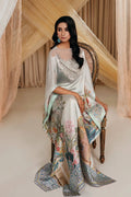 Immerse yourself in the lavish splendor of “Aqua Elegance.” This magnificent creation showcases a harmonious fusion of architectural elements and gentle floral vines, exquisitely rendered on a canvas of lush softness. The kaftan is adorned with detailed hand-embellishment of gorgeous sparkling crystals, sequins, pipes and beautiful semi-precious stones, Swarovski elements, silver jewels, and glistening beads, infusing true glamor into the ensemble