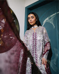 Enjoy the subtle allure of this 3-piece lilac organza costume, which combines delicate beauty and classic elegance. The flow of the airy, light organza fabric creates a beautiful, ethereal, and attractive silhouette. The delicate lilac color provides a feminine and revitalizing touch, making it ideal for joyous events like Eid. This ensemble oozes soft sophistication when paired with a matching dupatta and trousers, making it great for individuals seeking a sophisticated yet appealing look for any occasion.