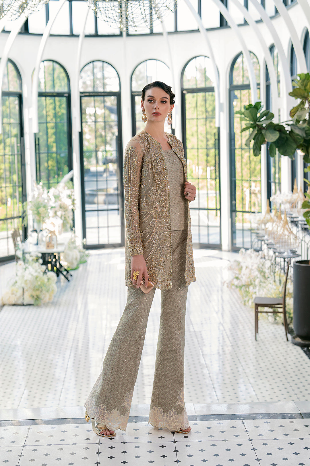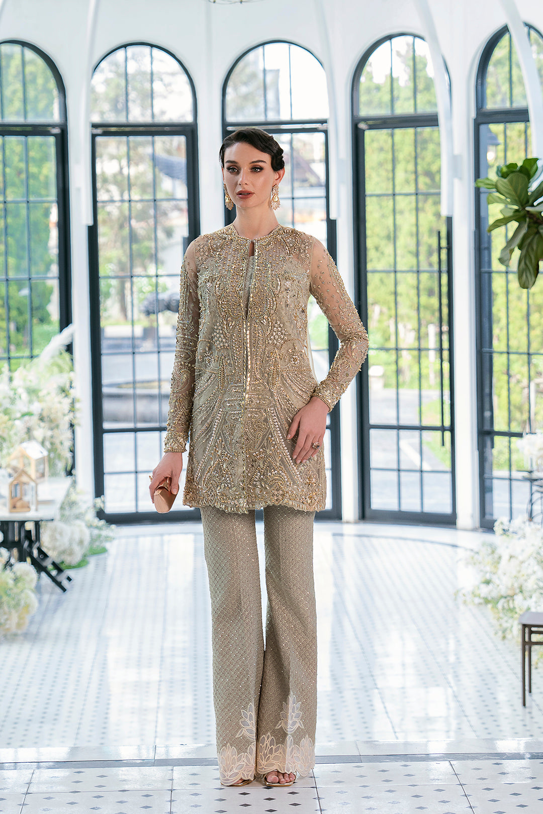 We are delighted to present Hoorain Designer Wear's premium sewing service, which is dedicated to delivering flawless sewing styles and exceptional quality. Our skilled team devotes careful attention to detail, ensuring that each dress is meticulously planned and sewn in accordance with the brand shoots showcased on our website. However, it is important to bear in mind that these shoots often incorporate design elements for illustrative purposes only, which may not necessarily be included in our dresses. Consequently, customers should expect minor variations.