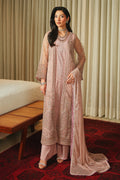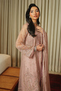This luxurious four-piece set features a long raw silk inner adorned with meticulous embroidery, sequins, and an elegantly patterned neckline. Layered over it is a diaphanous organza gown embellished with intricate embroidery, sequins, and adda work along the hemline. The gown's back showcases a heavily embroidered and sequined border for dramatic effect. Complemented by refined culottes and a delicate net dupatta with an elaborate side-length spray pattern, four-sided decorative trims, and finished with precise four-sided tapping for a polished silhouette.