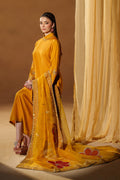 A timeless creation crafted from luxurious Indian raw silk, this ensemble features a classic band neckline with a stylish back slit, delicately adorned with intricate adda work. The shirt is covered in pure adda embellishment, showcasing exceptional craftsmanship and artistic finesse. Flared sleeves with rounded hems add a graceful flair to the silhouette, while adda detailing along the side slits brings an added layer of richness. The shirt is tailored for a flattering length and finish, perfectly paired with straight trousers to balance elegance with simplicity. Ideal for refined gatherings, this outfit reflects a perfect harmony of tradition and contemporary sophistication.