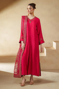 This elegant ensemble from our Studio collection is a refined statement of traditional craftsmanship and modern design. The shirt features a deep V neckline adorned with intricate adda work, enhanced by delicate hangings that add a touch of femininity and charm. The hem and borders are beautifully embellished with a blend of machine embroidery, sequins, and fine adda detailing, showcasing meticulous artistry. Crafted from premium Indian raw silk, the shirt also features detailed adda work along the side slits and a structured box pleat at the center, offering both style and graceful movement. The full-length sleeves are designed for a comfortable fit with classic embroidery accents. The set is completed with straight trousers, tailored in rich Pakistani raw silk, ensuring both elegance and ease. Perfect for festive gatherings or formal affairs, this outfit celebrates timeless tradition with a modern silhouette.