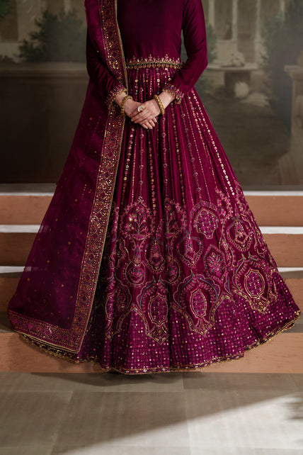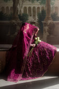 A stunning pink velvet lehenga set designed with elegance and charm. The blouse features a graceful neckline with delicate embroidered borders and fine sequin detailing. The lehenga is crafted with multiple panels, heavy border work, and a voluminous flare. The net dupatta is beautifully finished with a four-sided border and center spray, adding a soft, dreamy touch to the ensemble.